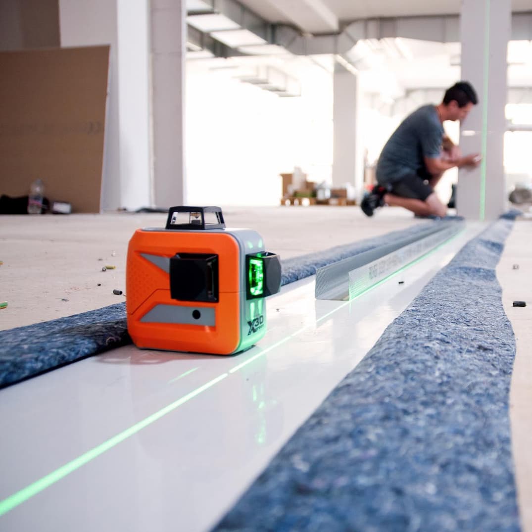 Las líneas láser verdes de alta visibilidad y la sólida autonivelación permiten nivelar, alinear, aplomar y tranferir ángulos rectos en interiorismo de forma fácil y rápida. Láser de líneas múltiples verdes con tres líneas láser de 360°.